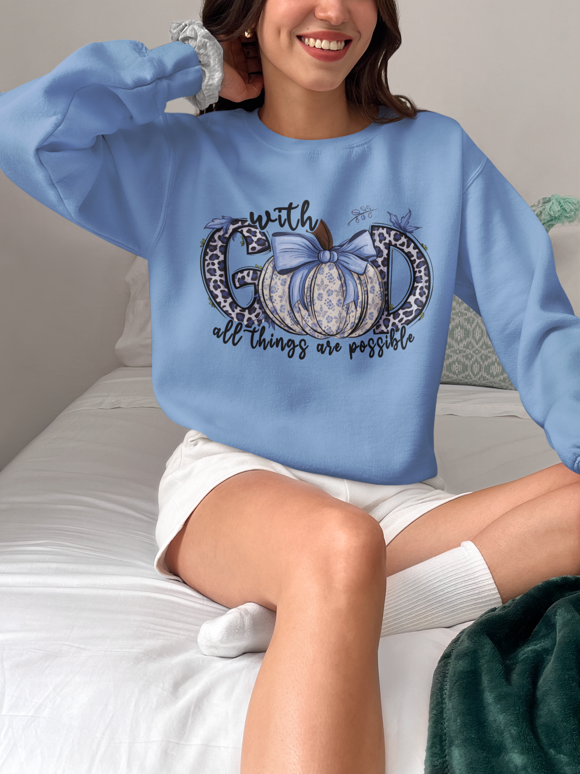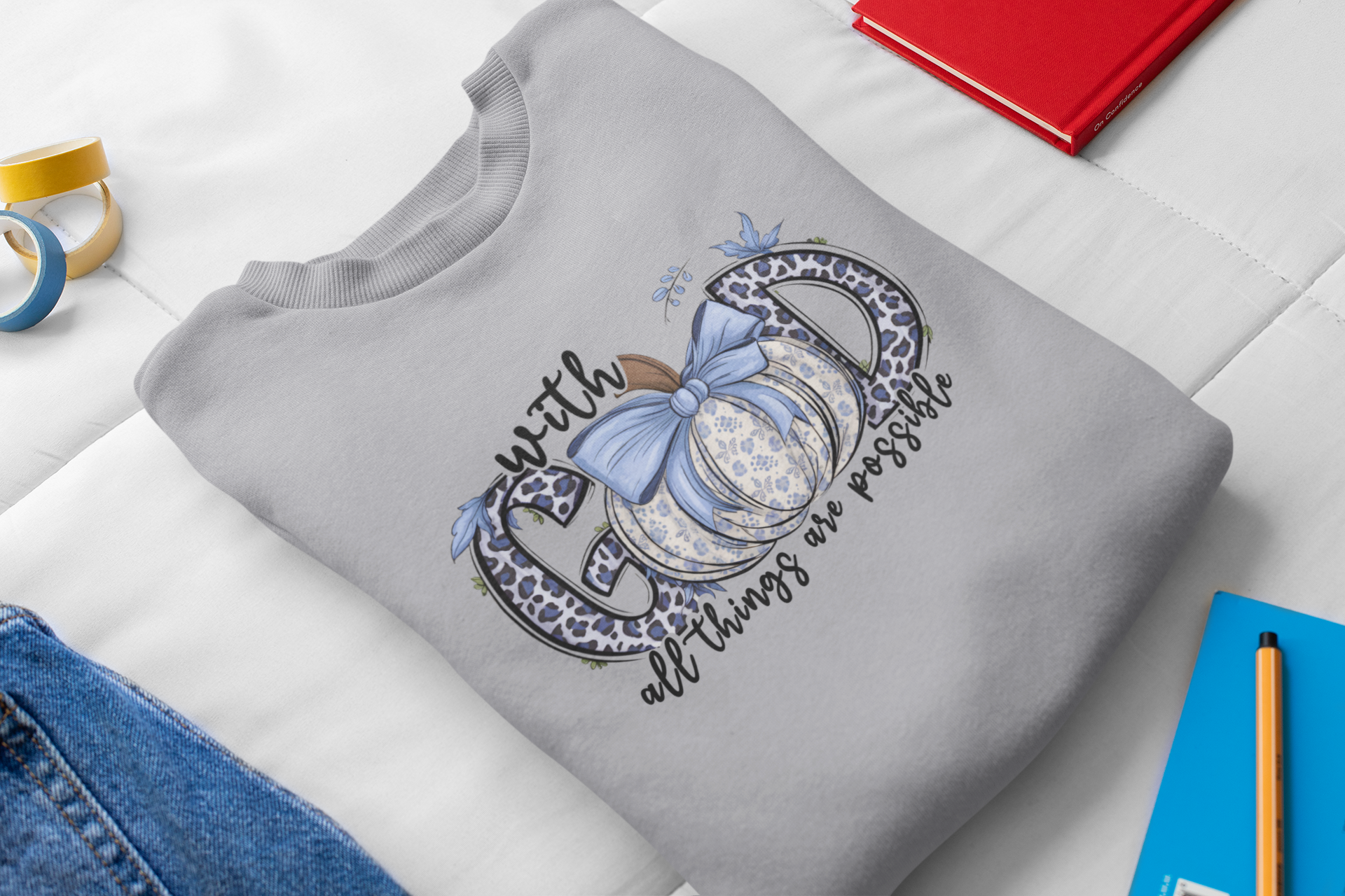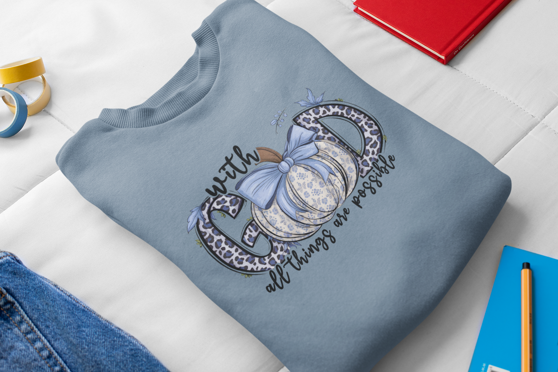 With God All Things are Possible Unisex Crewneck Sweatshirt Blue